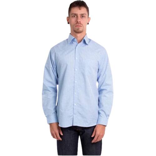 Camisa Social Xadrez Mangas Longas Azul Claro - Azul Claro - G