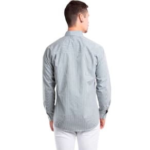 Especificações técnicas - Modelo: camisa social masculina, manga longa - Gola: tradicional com entretela - Fechamento: botões frontais em tom sobre tom - Bolso: 1 bolso superior esquerdo - Tecido: algodão com poliéster para maior durabilidade