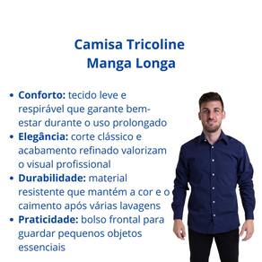 Camisa Tricoline Manga Longa Sofisticação e Conforto para seu Dia a Dia A camisa tricoline manga longa é confeccionada em tecido 100% algodão tricoline de alta qualidade, com colarinho rígido com entretela, botões na cor do tecido e um bolso superior frontal, oferecendo elegância e praticidade em ambientes formais.