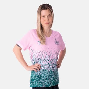 A Chapecoense em parceria com a Umbro Brasil, apresenta a nova camisa rosa exclusiva com efeito degradê personalizado (rosa e verde), desenvolvida para a campanha do Outubro Rosa. A arte do manto vem em pixelização construída pelo formato de diamantes. Cada diamante representa uma torcedora e todas elas juntas são a força e a rede de apoio para que todas lutem e se previnam contra o câncer de mama. Confeccionada em poliéster, modelagem com manga curta e gola V, a camisa feminina Chapecoense Outubro Rosa 2021 é leve e respirável.