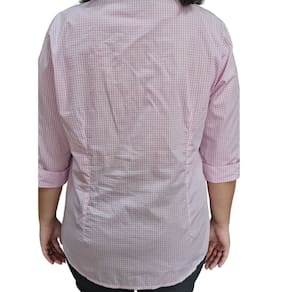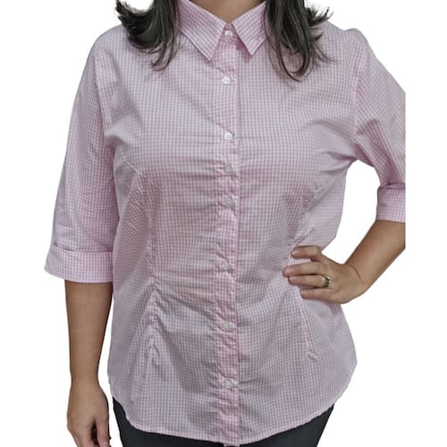 Camisa Xadrez Feminina de Manga 3/4 em Algodão 100%.