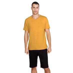 Camiseta 100% Algodão 30.1 Gola V Mostarda - Amarelo Ouro - G