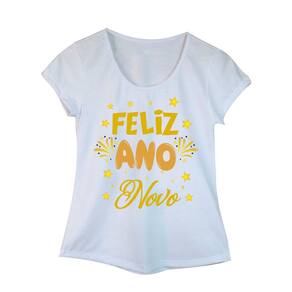Camiseta Adulta Feminina Manga Curta Feliz Ano Novo - Branco - P