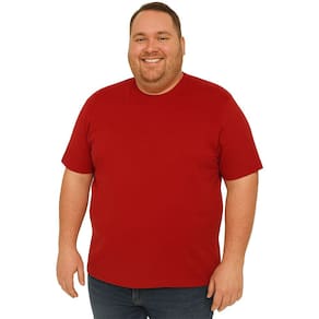 Camiseta Adulta Masculina Básica Lisa Plus Size.Tecido: malha 100% algodão.Cor: vermelho.Manga curta.Gola redonda.Tamanho plus size: G1 ao G3.Consulte a tabela de medidas nas fotos.