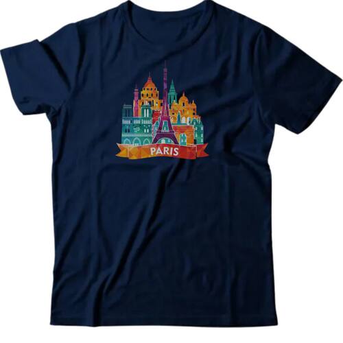 Camiseta algodão global prints - Torre Eiffel - Azul Marinho - P