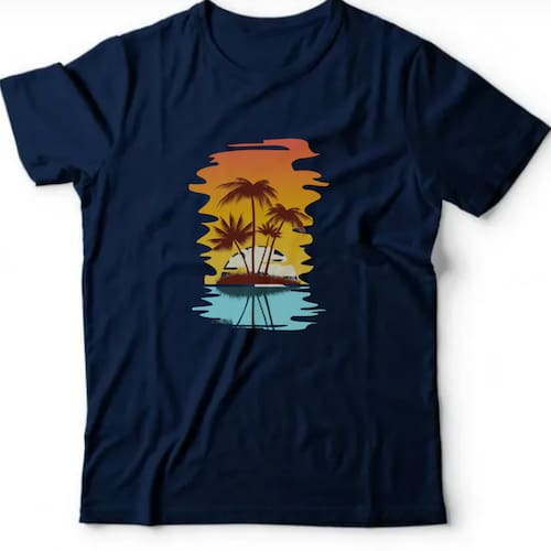 Camiseta algodão pets & natureza - Ao pôr do Sol - Azul Marinho - M