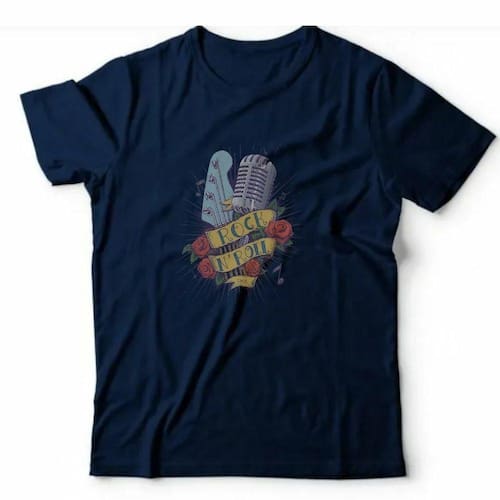 Camiseta algodão rock -microphone - Azul Marinho - P