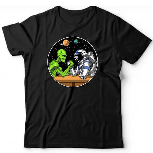 Camiseta algodão ufologia - Alien vs Astronauta - Preto - G