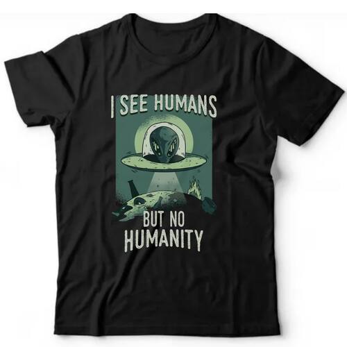 Camiseta algodão ufologia - I see humans - Preto - GG