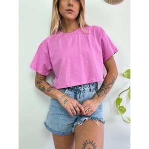 A camiseta cropped é uma peça confortável e versátil, perfeita para os dias mais quentes. Feita com tecido de algodão macio, ela oferece um caimento agradável e é ideal para compor looks casuais e descolados.