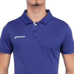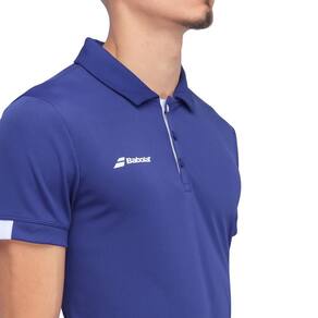 - Detalhamento: Camiseta polo com design moderno na gola e abertura em botão, mangas curtas, fendas na laterias (3,5cm), tecido leve e confortável, toque suave, logo na manga esquerda e recortes em cor contrante em ambas as mangas, escrita e logo Babolat na parte da frente na altura do peito lado direito;