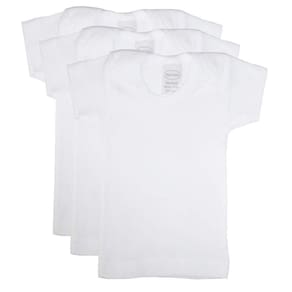Este pacote essencial de camisetas é uma peça básica perfeita para combinar com qualquer calça que você desejar. Com tecido respirável 100% algodão, esta roupa certamente manterá seu pacote de alegria confortável o dia todo. Tamanhos: NB, S, M, L3 por pacote. Cor: branca, 100% algodão, costela para respirabilidade e conforto. O decote no ombro com botão de pressão ajuda a puxar a roupa com muita facilidade sobre a cabeça do bebê. Lavar/secar na máquina. Roupas de bebê para cada recém-nascido que precisa de roupas.