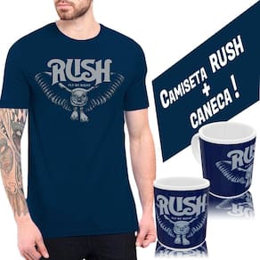 Camiseta Banda Rush rock clássico, estampa exclusiva, unissex + caneca - Azul Petróleo - M