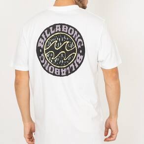 Camiseta Billabong feita em modelagem Core fit, meia malha, estampa aplicada na frente e costas e etiqueta da marca aplicada na lateral do lado esquerdo de quem veste.