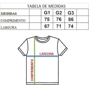Consulte a tabela de medidas nas fotos.