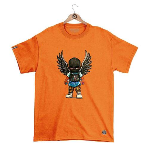 Camiseta DBL Gola Redonda Estampa ANJO Streetwear fio 30.1 Penteado. - Laranja - G