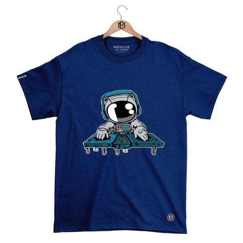 Camiseta DBL Gola Redonda Estampa ASTRO DJ Streetwear fio 30.1 Penteado. - Azul Petróleo - M