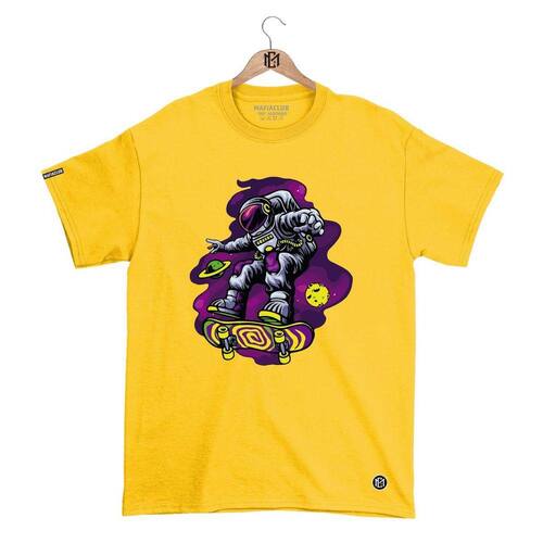Camiseta DBL Gola Redonda Estampa ASTRO SURFISTA Streetwear fio 30.1 Penteado. - Amarelo - GG