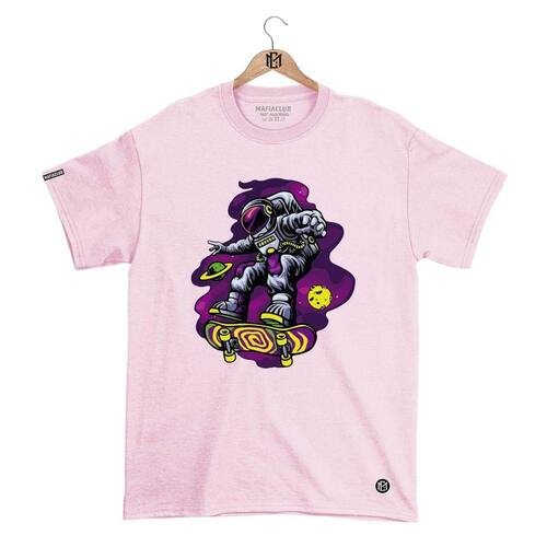 Camiseta DBL Gola Redonda Estampa ASTRO SURFISTA Streetwear fio 30.1 Penteado. - Rosa - G