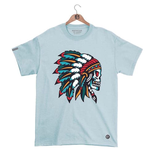 Camiseta DBL Gola Redonda Estampa CAVEIRA 2 Streetwear fio 30.1 Penteado. - Azul Claro - M