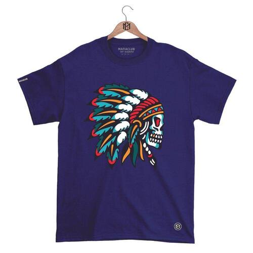 Camiseta DBL Gola Redonda Estampa CAVEIRA 2 Streetwear fio 30.1 Penteado. - Azul Petróleo - G