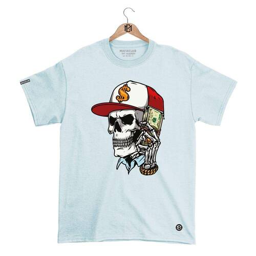 Camiseta DBL Gola Redonda Estampa CAVEIRA Streetwear fio 30.1 Penteado. - Azul Claro - P