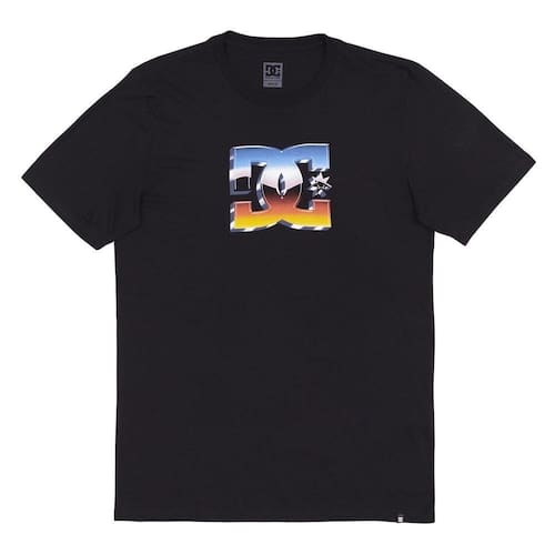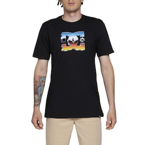 Camiseta DC Shoes feito em meia malha 30.1, modelagem regular, estampa frontal e etiquetas personalizadas.