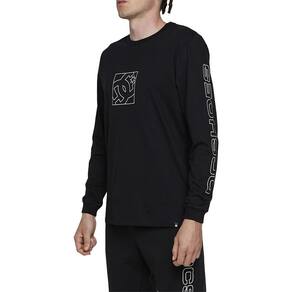 Camiseta DC Shoes Manga Longa feita em modelagem regular, meia malga malha 30.1, estampa frontal e estampas nas duas mangas.
