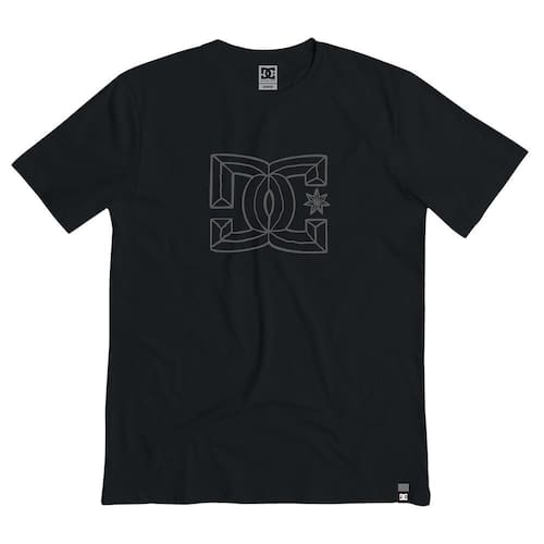 Camiseta Dc Shoes feita em modelagem regular, meia malha 30.1, estampa frontal e etiquetas personalizadas.