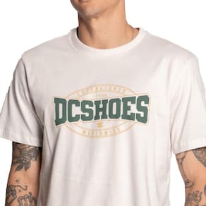 Camiseta Dc Shoes feita em modelagem regular, meia malha 30.1, estampa frontal e etiquetas personalizadas.
