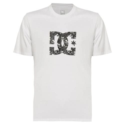 Camiseta Dc Shoes feita em modelagem regular, meia malha 30.1, estampa frontal e etiquetas personalizadas.
