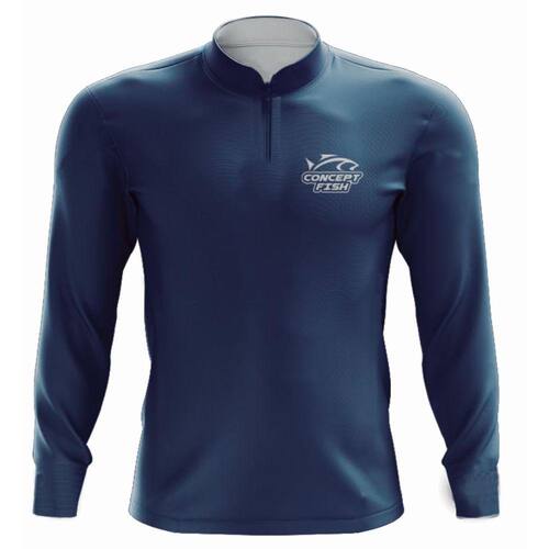 Camiseta de Pesca Concept Fish com Proteção Solar UV Azul Marinho Lisa