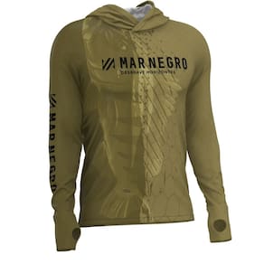 Camiseta de pesca manga longa com capuz Mar Negro Sublimada capuz Tucuna Army\nDescubra a Camiseta de pesca manga longa com capuz Mar Negro Sublimada capuz Tucuna Army, a escolha perfeita para pescadores que buscam proteção, conforto e estilo em uma única peça. Desenvolvida com tecido tecnológico de alta performance, oferece proteção UV, secagem rápida e respirabilidade, essencial para longas jornadas ao ar livre. O design sublimado garante durabilidade da estampa e conforto térmico, enquanto o capuz ajustável protege contra sol e vento. Além disso, a modelagem anatômica com punhos que permitem encaixe no polegar proporciona liberdade de movimento e segurança. Ideal para quem valoriza performance e resistência em ambientes desafiadores.\nPrincipais benefícios: - Proteção UV alta para pele protegida durante o dia - Tecido leve, respirável e de secagem rápida - Design sublimado resistente ao desgaste - Capuz cruzado ajustável para maior proteção contra intempéries - Modelagem confortável com punhos para fixação nas mãos - Visual moderno\nInvista em qualidade e performance para suas aventuras de pesca com esta camiseta que une funcionalidade e estilo na medida certa.\nTabela de medidas:\nTAMANHO TÓRAX (cm) MANGA (cm) COMPRIMENTO (cm) P 48 64 66 M 50 66 70 G 54 68 72 GG 56 69 73 G1 61 71 75 G2 64 73 78 G3 66 74 80 Marca: Não Informado Marca: Não Informado Marca: Não Informado