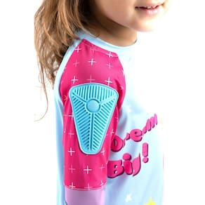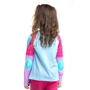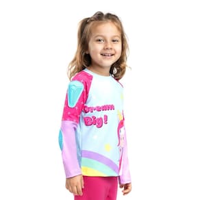 Confeccionada em tecido macio e leve, ela proporciona sensação agradável ao toque, permitindo liberdade de movimento. Sua parte traseira possui material respirável, que favorece a circulação do ar e mantém a criança fresca mesmo nos dias mais quentes. Com proteção solar UV 50+, ela oferece segurança contra os raios solares, além de contar com proteção adicional nos ombros e cotovelos, garantindo ainda mais proteção durante brincadeiras e aventuras.