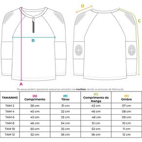 Confeccionada em tecido macio e leve, ela proporciona sensação agradável ao toque, permitindo liberdade de movimento. Sua parte traseira possui material respirável, que favorece a circulação do ar e mantém a criança fresca mesmo nos dias mais quentes. Com proteção solar UV 50+, ela oferece segurança contra os raios solares, além de contar com proteção adicional nos ombros e cotovelos, garantindo ainda mais proteção durante brincadeiras e aventuras.