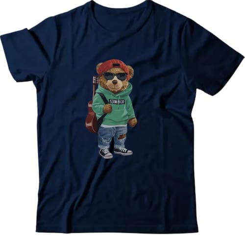 Camiseta desenhos - Urso musical - Azul Marinho - M
