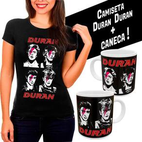 Camiseta Duran Duran Bowie + Caneca, estampa exclusiva, unissex - Preto - P