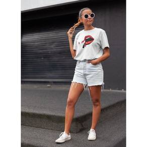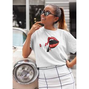 Camiseta ECF Feminina Boca Sensual Manga Curta Branca Poliester - Branco - G