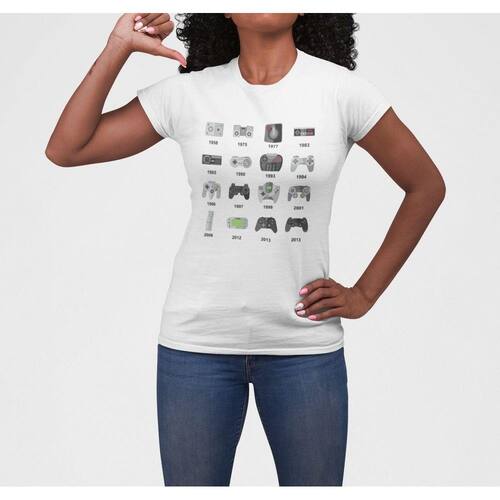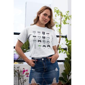 Camiseta ECF Feminina Controles de Video Game Manga Curta Branca Poliester - Branco - M