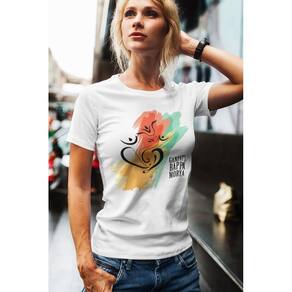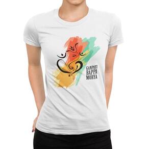 Camiseta ECF Feminina Ganpati Bappa Morya Manga Curta Branca Poliester - Branco - GG