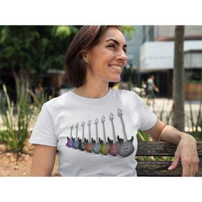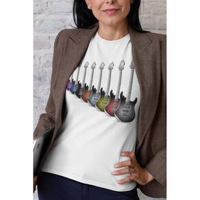 Camiseta ECF Feminina Guitarras Infinitas Manga Curta Branca Poliester - Branco - G