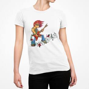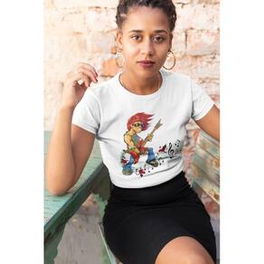 Camiseta ECF Feminina Guitarrista Manga Curta Branca Poliester - Branco - GG