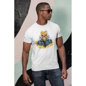 Camiseta ECF Masculina Caveira e Espinhos Manga Curta Branca Poliester - Branco - M