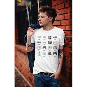 Camiseta ECF Masculina Controles de Video Game Manga Curta Branca Poliester - Branco - GG