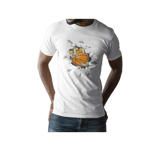 Camiseta ECF Masculina Garras segurando bola de basquete Manga Curta Branca Poliester - Branco - M
