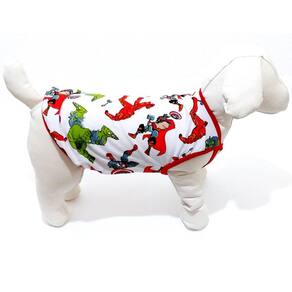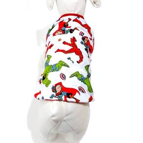 Camiseta confeccionada em malha PV poliéster com viscose na cor branca; Estampa temática do Personagem Liga da Justiça; Acabamento em cotton vermelho; Tamanho : G Cor: Branca; Medidas aproximadas: 37 cm de comprimento, 50 cm de circunferência torax, 30 cm pescoço; Deixe seu Pet super estiloso com seu personagem favorito. Marca: Não Informado