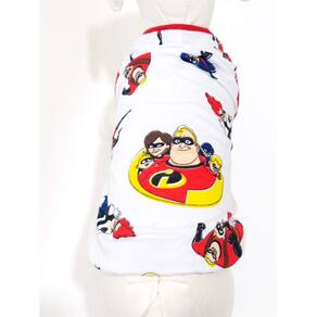 Camiseta confeccionada em malha PV poliéster com viscose na cor branca; Estampa temática do Personagem Os Incríveis; Acabamento em cotton rosa; Tamanho : M; Cor: Branca; Medidas aproximadas: 34 cm de comprimento, 44 cm de circunferência torax, 27 cm pescoço; Deixe seu Pet super estiloso com seu personagem favorito. Marca: Não Informado