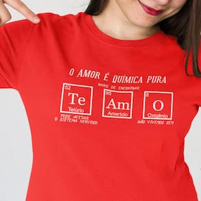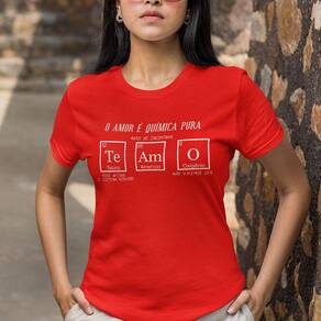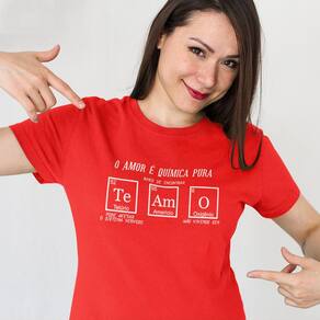 Camiseta Feminina Amor é Química Pura Namorados Baby Look - Vermelho - G