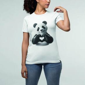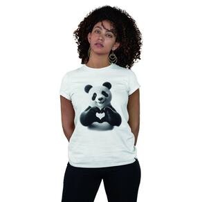 Camiseta Feminina Baby Look Panda Love Coração Fofo Branca