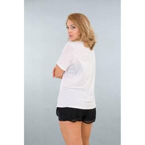 Benefícios Fit confortável, alta elasticidade, liberdade de movimento Ótima respirabilidade, aeração, sensação de frescor Não retém suor Tecido tecnológico com fator de proteção solar UV 50+, proteção para sua pele Secagem rápida, não amassa Característica Camiseta de manga curta, gola em U Costura trançada Confeccionada em tecido leve de poliamida e elastano Recomendação Camiseta T-shirt para academia, yoga, funcional, pilates, crossfit, corrida de rua e casual. Composição do Tecido Poliamida: 79%; Elastano: 21% Tabela de Medidas (cm): Tam P: Busto 84 - 90; Cintura 63 - 72; Comprimento da manga 13 Tam M: Busto 90 - 96; Cintura 73 - 78; Comprimento da manga 15 Tam G: Busto 96 - 102; Cintura 79 - 85; Comprimento da manga 16 Tam GG: Busto 102-108; Cintura 86 - 91; Comprimento da manga 16Roupas moda fitness apresentam elasticidade, na dúvida entre tamanhos recomendamos selecionar o maior